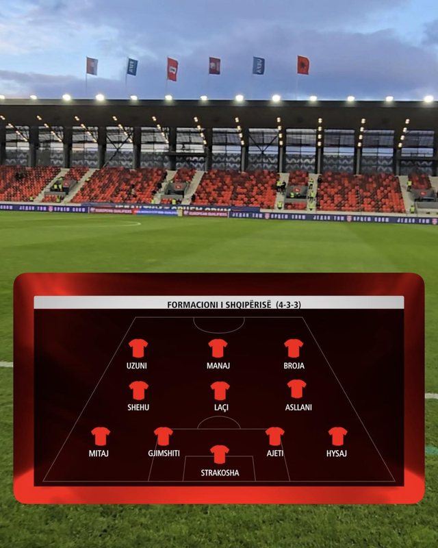 Ndryshimi i vetëm vjen nga krahu i majtë i sulmit, aty ku nuk do të jetë as Bajrami dhe as Hoxha, por Myrto Uzuni, ndërsa krahu i djathtë i është besuar Brojës.